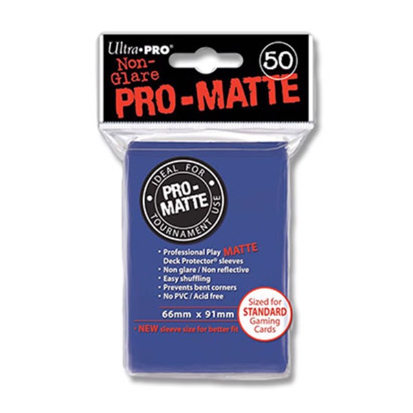 Solid color Deck Protectors with Ultra PRO's hologram quality seal. Clear side uses non-glare matte material for softer feel and smoother shuffle. Stores and protects standard sized cards. 50-count pack. All Ultra PRO Deck Protectors are archival-safe and acid-free.