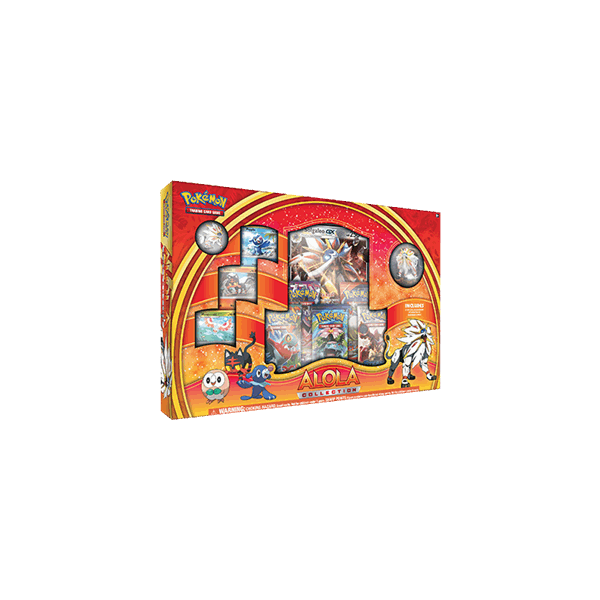 Prepare for a brand-new adventure with the Pokémon TCG: Alola Collection! The Alola region is a land of tropical breezes and never-before-seen Pokémon, and this collection shows off its brightest stars. The Legendary Pokémon Solgaleo or Lunala appears as a stunning oversize Pokémon-GX card featuring a new game mechanic, a colorful pin, and a beautifully sculpted figure, all bursting with cosmic power! Plus, you’ll find foil promo cards featuring all three of the new first partner Pokémon. Let the adventure begin!