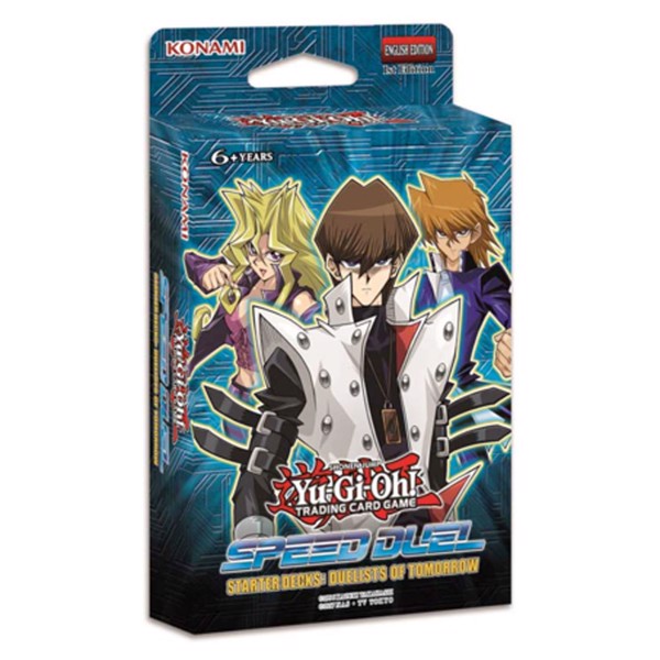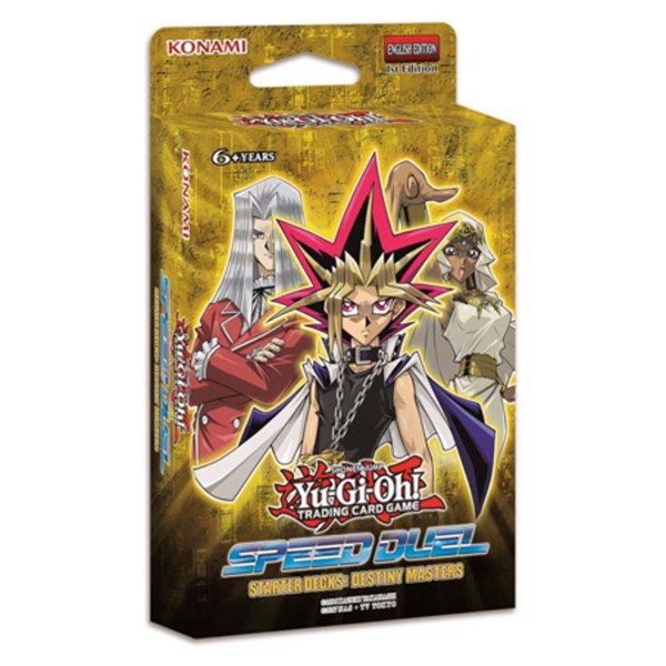 The Speed Duel Starter Decks each contain 3 ready-to-duel Speed Duel Decks and 3 Ultra Rare variant cards specially chosen to boost each strategy. Speed Duel Starter Decks: Destiny Masters contains Decks for the Millennium Item users Yami Yugi, Ishizu Ishtar and Maximillion Pegasus to face off against up-and-comers from Speed Duel Starter Decks: Duelists of Tomorrow containing Decks for Seto Kaiba, Mai Valentine and Joey Wheeler.